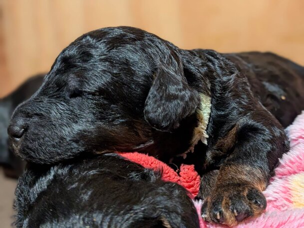 Unsere Züchtereltern meinen ,man könne zugucken wie wir wachsen. Das liegt bestimmt daran das unsere Mama Sunny uns so gut versorgt