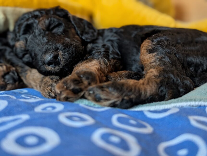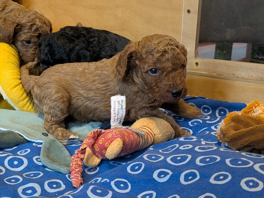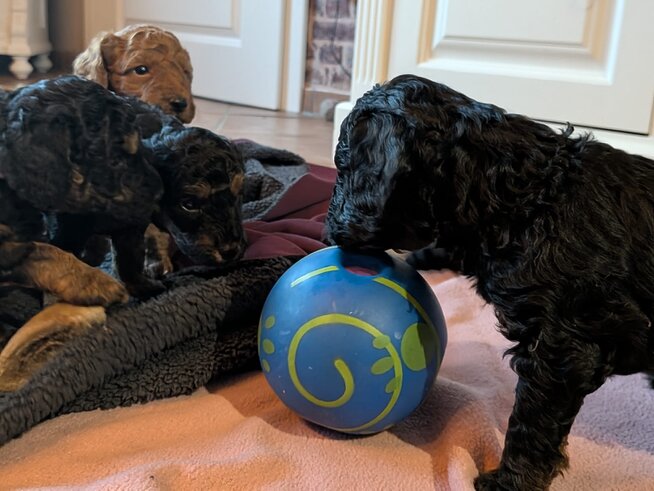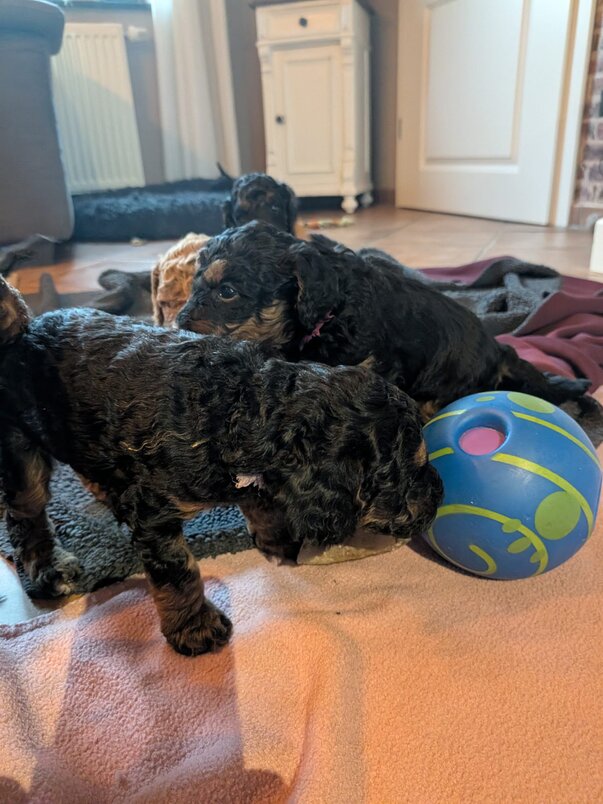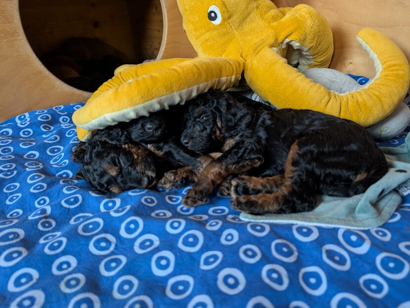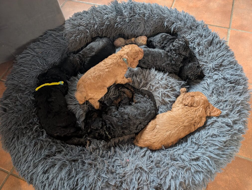 Inzwischen haben wir unseren Umzug in die große Welpenstube hinter uns. Ist das schön hier.