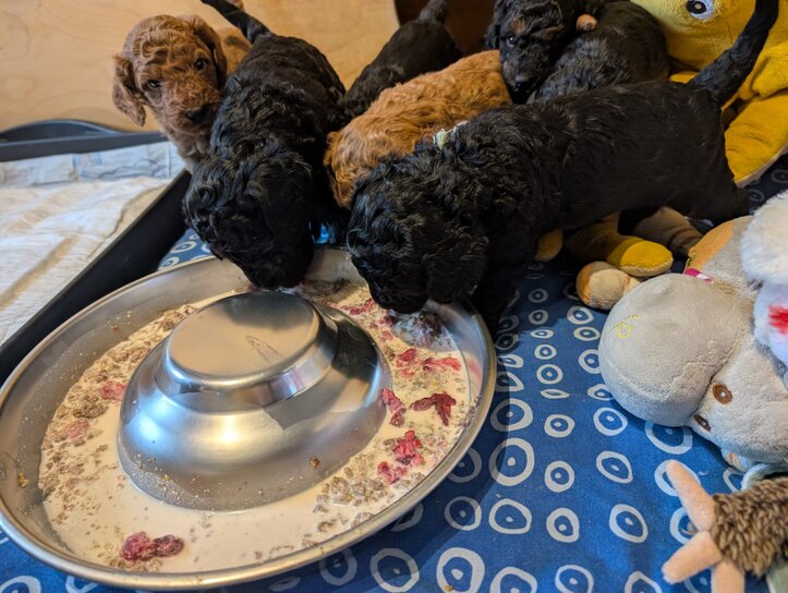 Unsere Mama Sunny versorgt uns immer noch bestens mit Milch , jedoch haben wir auch schon Ziegenmilch mit feinem Fleisch vom ,,silbernen Tellerchen" verputzt. Einfach zu köstlich.