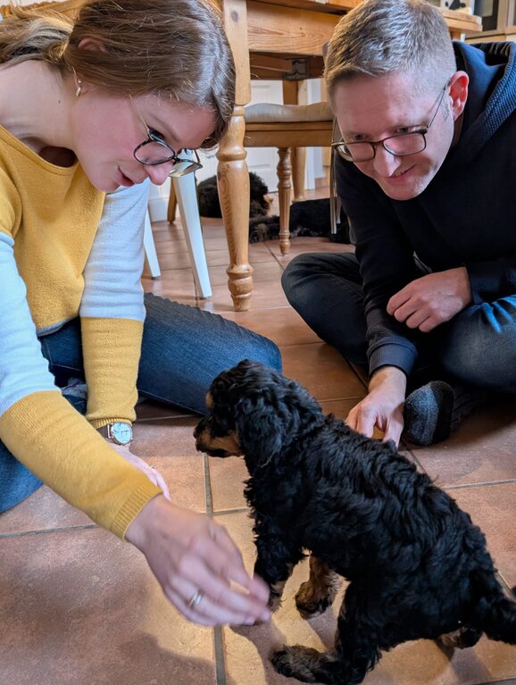 Gemeinsame Schmuse und Spielstunden mit unseren zukünftigen Pudeleltern durften wir auch wieder geniessen.