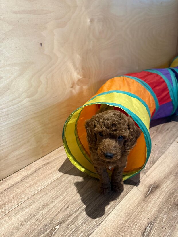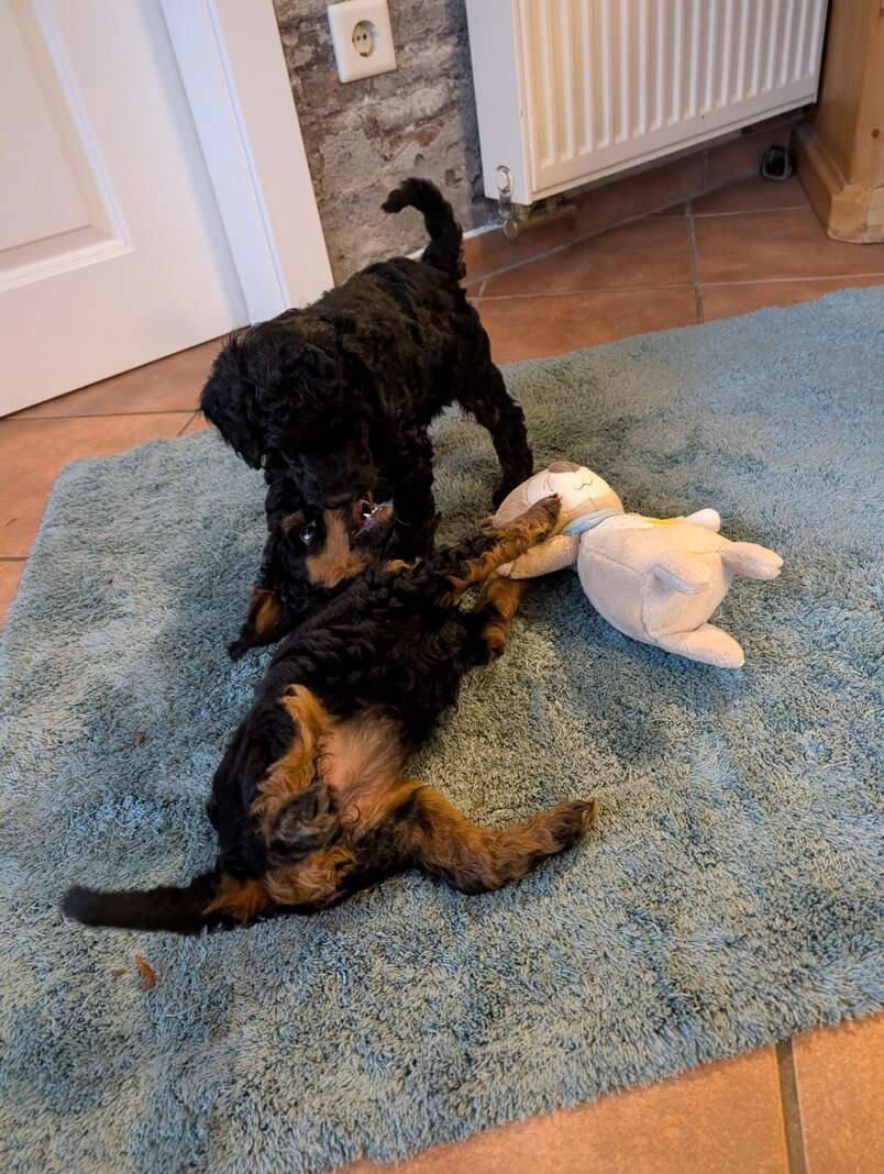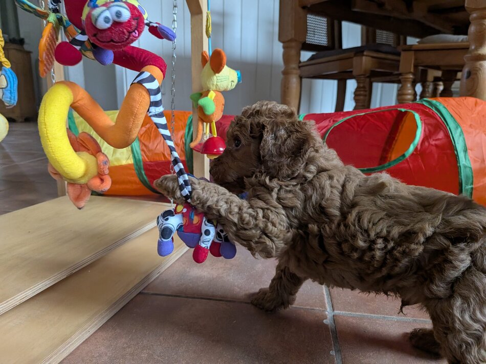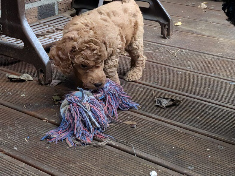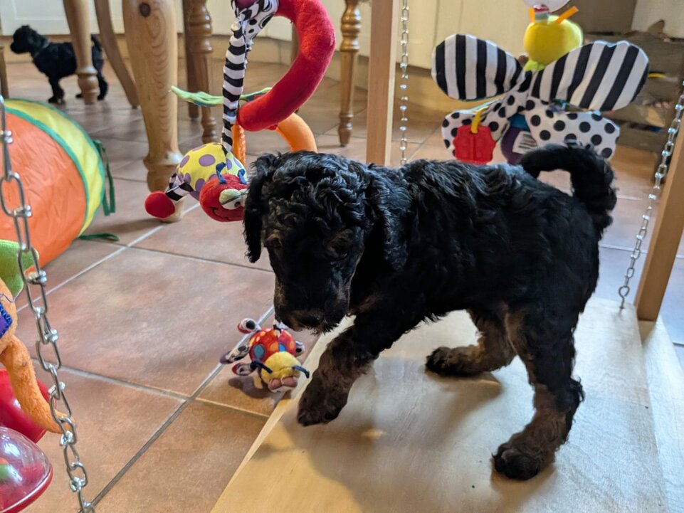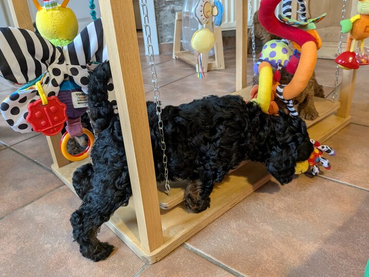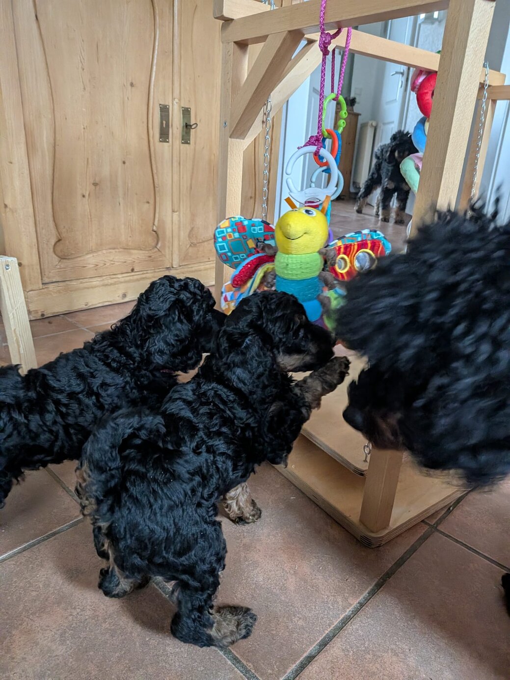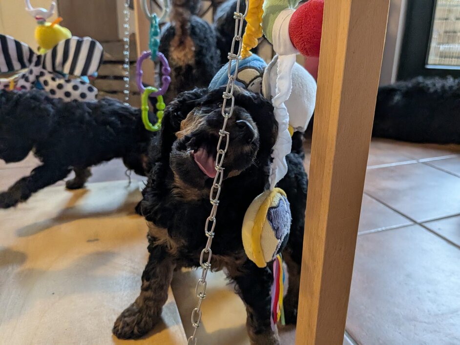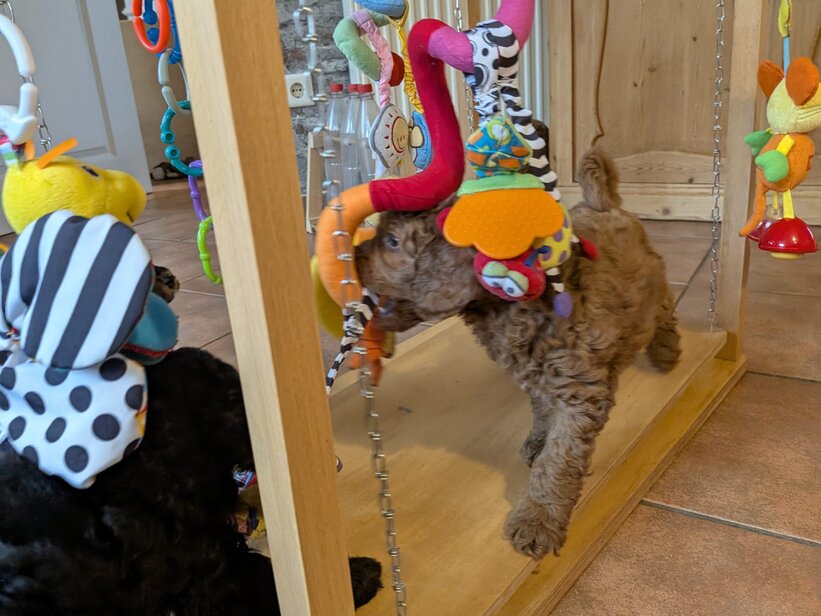 Zu unserem Glück gibt es ja so viel Spielzeug und einen kleinen ,,Welpenspielplatz " für uns, da können wir nach