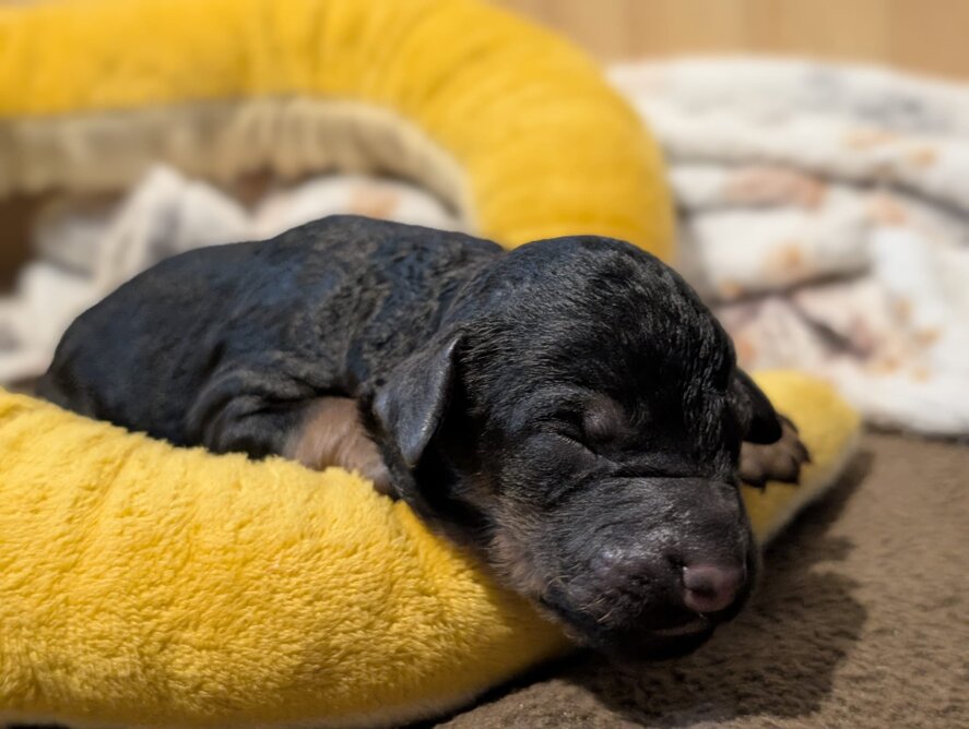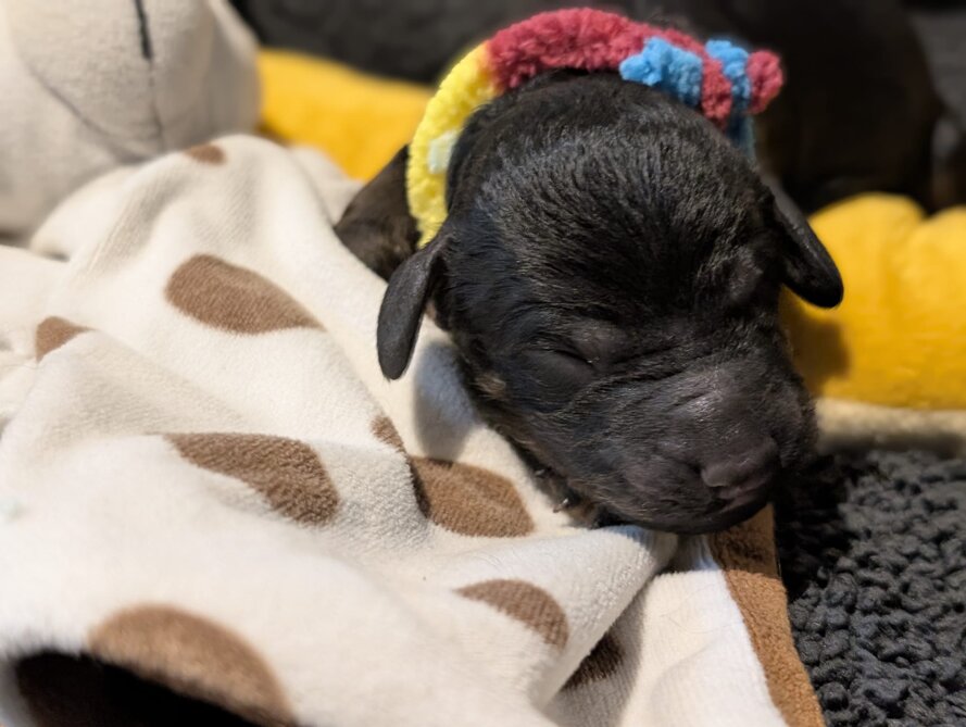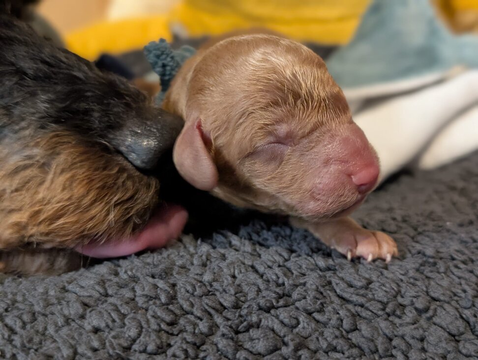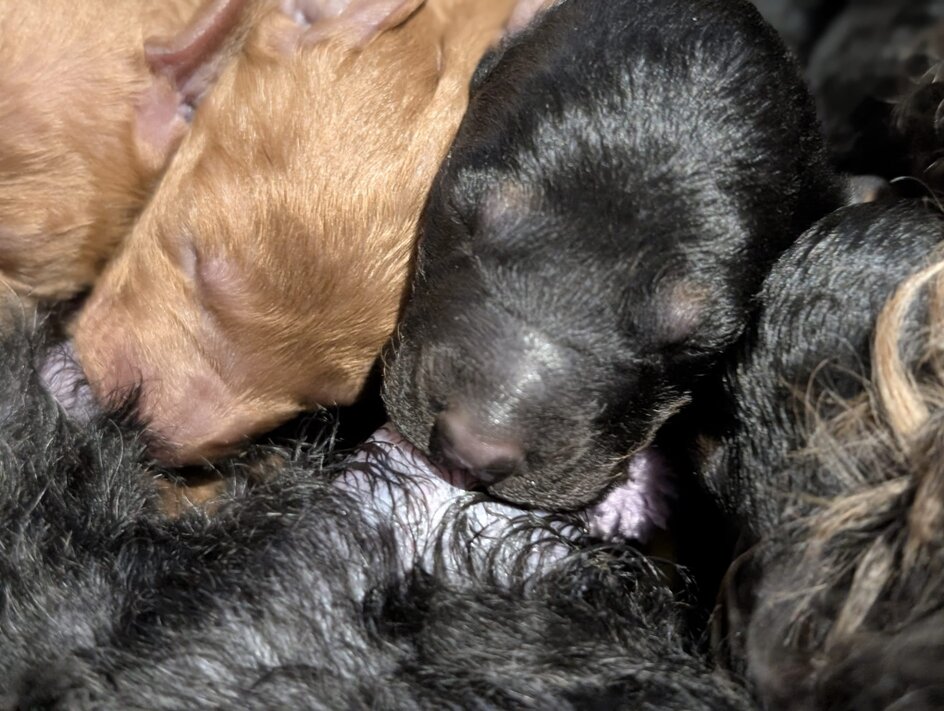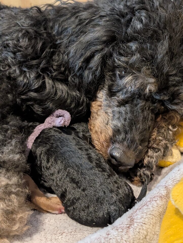 Unsere Sunny hat sieben kleine Löckchen zur Welt gebracht, es sind zwei Mädchen und fünf Jungs.