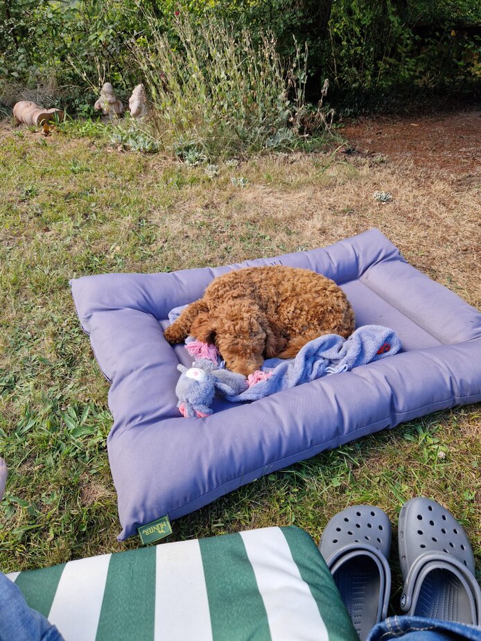 Guten Morgen, ja, Polly hat am Stück durchgeschlafen bis 7 Uhr, hat schon gegessen und auch getrunken. Vorher hatte sie im Garten Pipi gemacht und Gassi waren wir auch schon und wurden mit einem wunderschönen Häufchen dafür belohnt! Jetzt ist der kleine Rabauke zu allerlei Schandtaten bereit - wir auch 😅