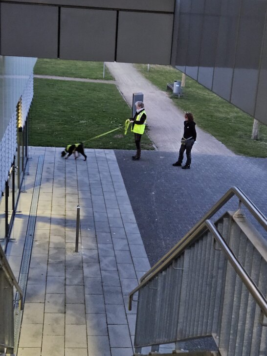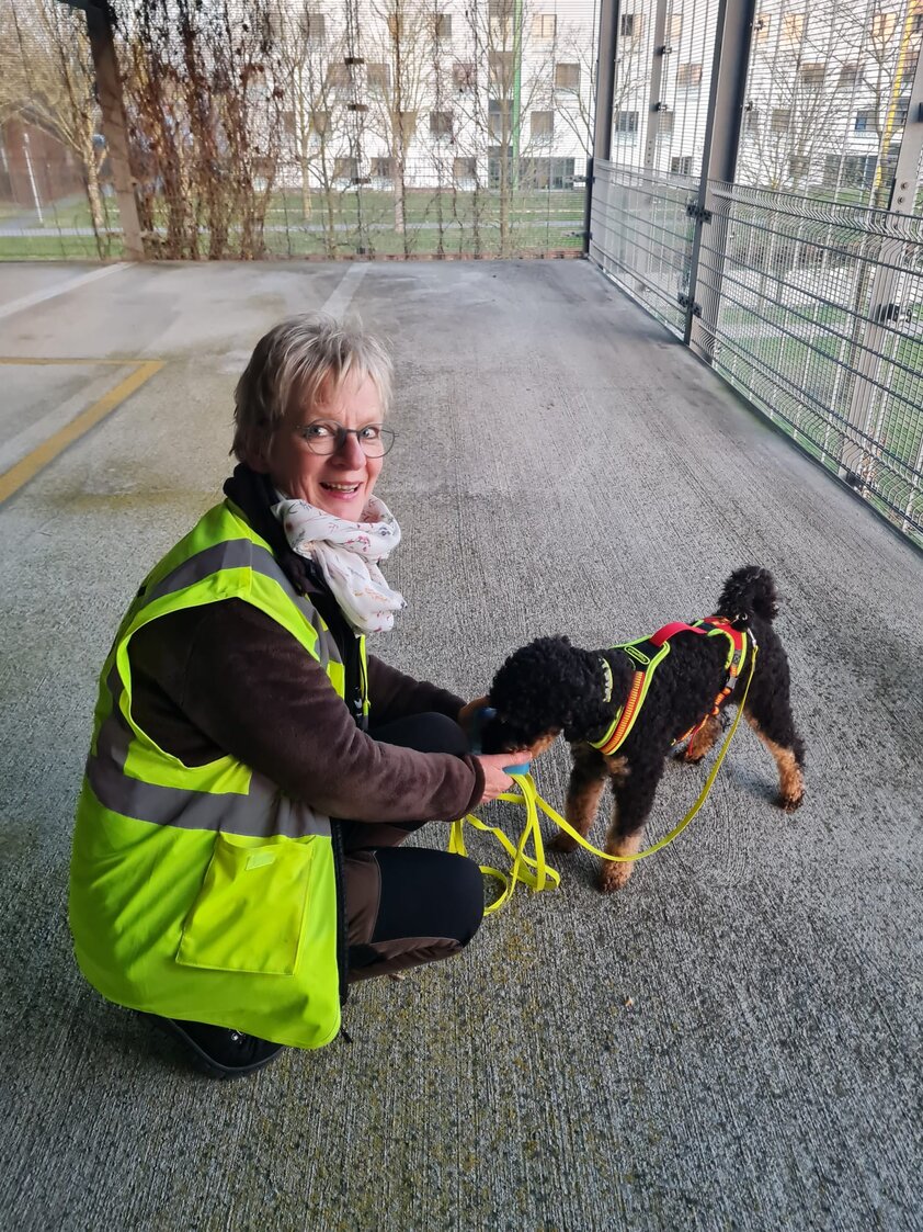 im Platz bleibt, mit Verleitungen wie drüber steigen, vorbeilaufender Hund usw. .....6 min, ich bin echt stolz 🥰