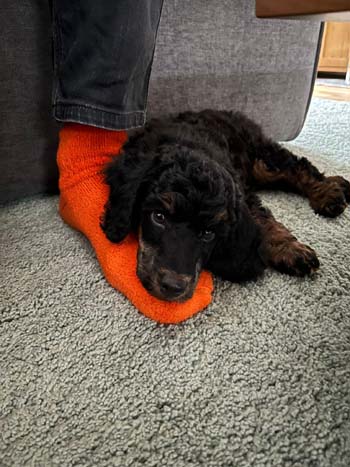 Am kommenden Samstag haben wir ein Spieledate in einer Welpenschule. Hier sind noch zwei weitere Pudel dabei und die Trainerin hat mir versichert, dass die Hunde nach Größe und Alter aufgetrennt werden, sodass hier eine gute Dynamik bestehen wird.