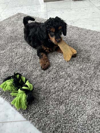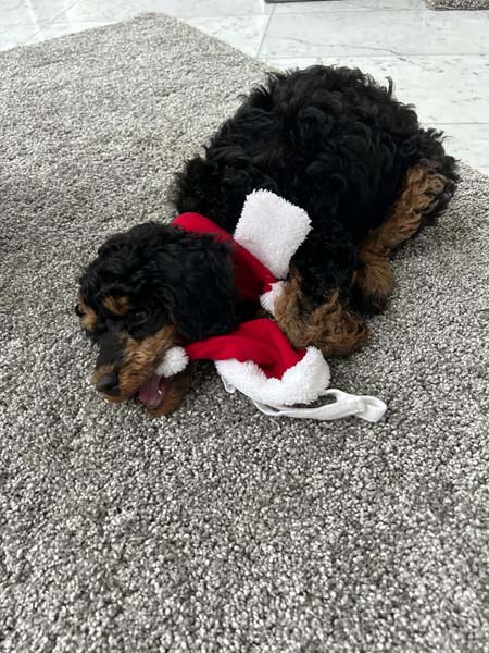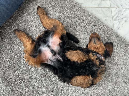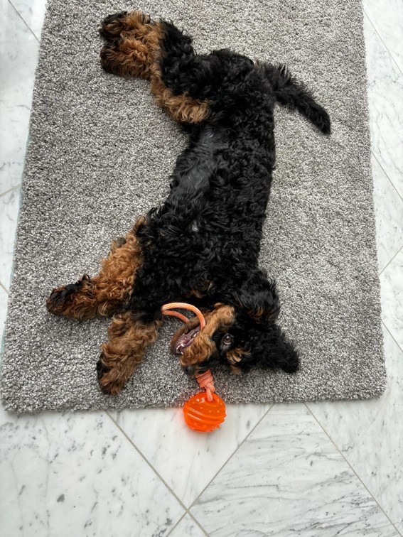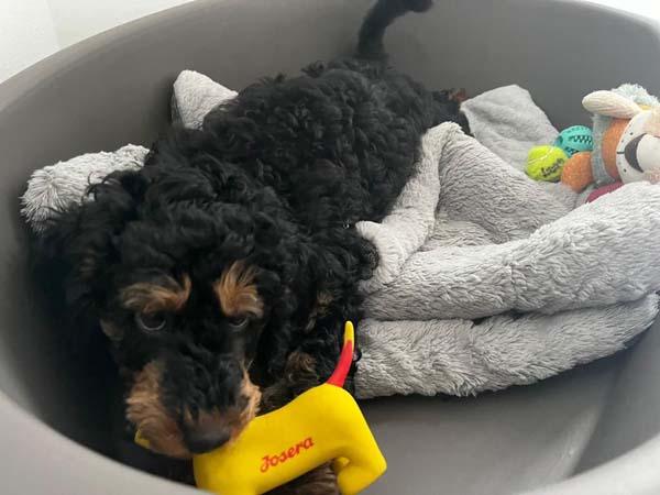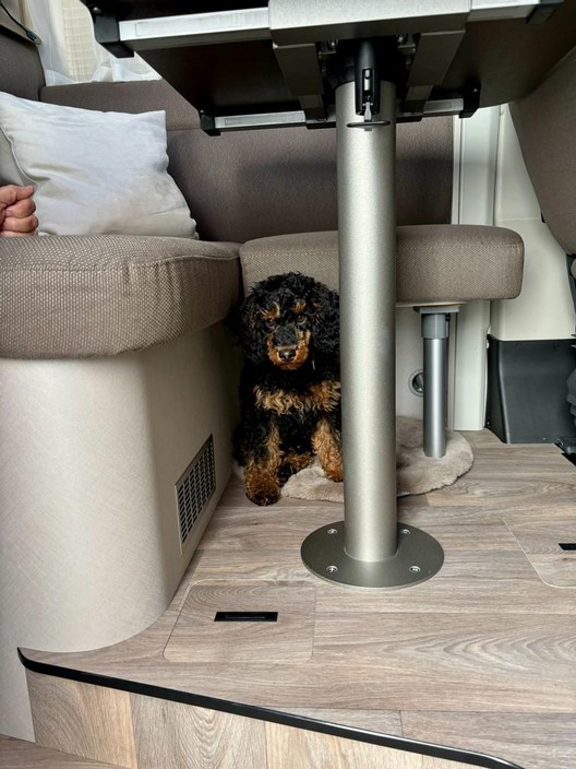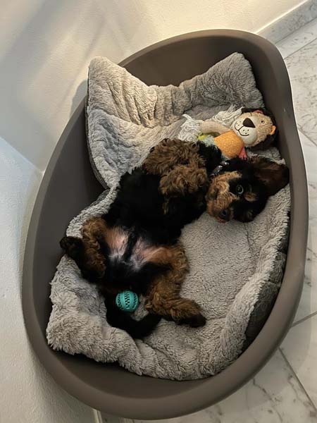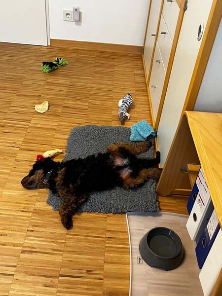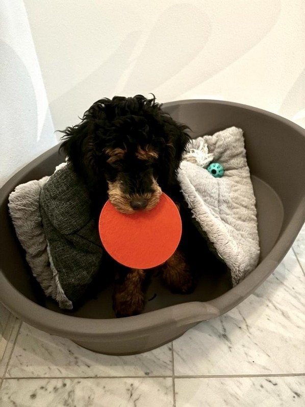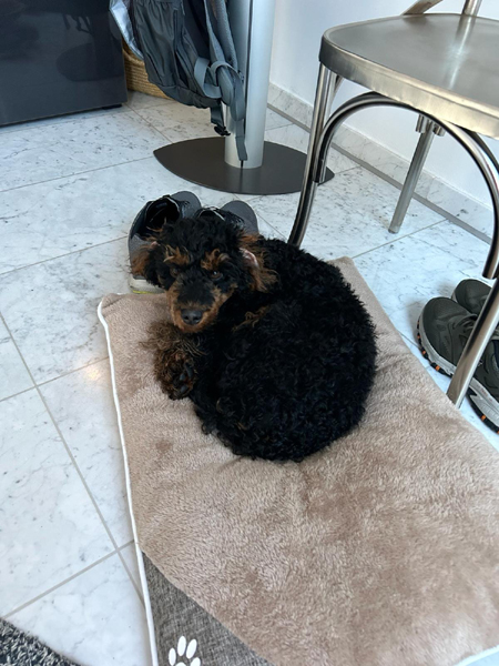 Liebe Steffi, Hugo hat gestern wieder toll gespielt in der Hundeschule, besonders mit seiner Freundin Fräulein Blum eine pudelhündin von der Trainerin! Heute bei dem schönen Wetter war ein Ausflug angesagt und eine Höhle im Wohnmobil finden, nun ist er müde und kuschelt 🥰🥰🥰 lg Annette