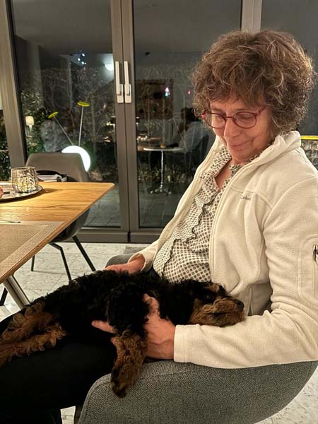 Liebe Steffi, Hugo geht es gut, er geht jetzt zur Hundeschule zum Welpen spielen, das macht ihm Spaß 🤩 Isa hat heute den Hunde Friseur gemacht und Kopf und Pfoten geschnitten hat gut geklappt! Lg Annette
