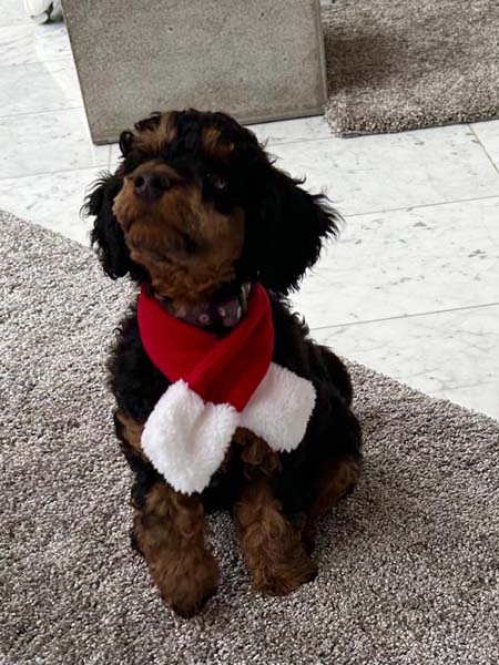 Viele liebe Weihnachtswünsche von Hugo (das mit der Mütze müssen wir noch üben)😊🥰🐶