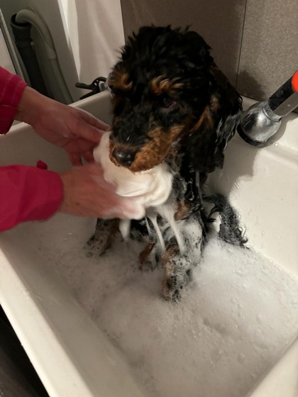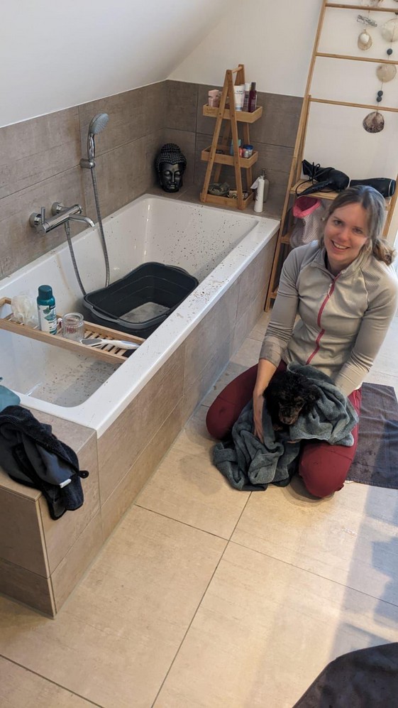 Liebe Steffi, Hugo hat heute in der hundeschule toll gespielt! Anschließend war Wäsche angesagt 😂😂😂🥰🥰🥰