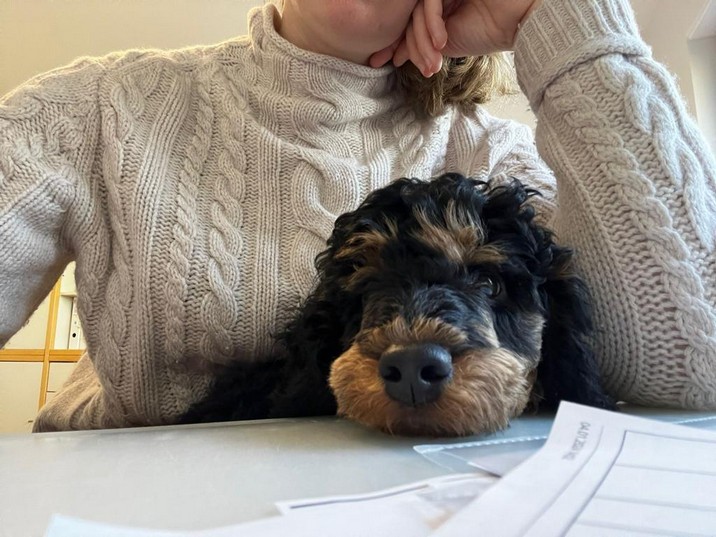 Liebe Steffi! Grüße von Hugo! Wir waren im Café und haben Binungsspaziergänge gemacht! Alles klappt ganz gut 👍. Hugo ist immer sehr gut drauf auch als Bürokraft ist er zu gebrauchen 🥰😂. Heute glaubte er im Wassernapf könnte Fische sein