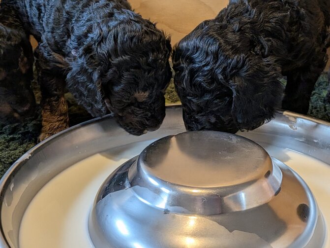Unsere Mama Sunny versorgt uns immer noch bestens mit Milch , jedoch haben wir auch schon Ziegenmilch mit feinem Fleisch vom ,,silbernen Tellerchen" verputzt. Einfach zu köstlich.