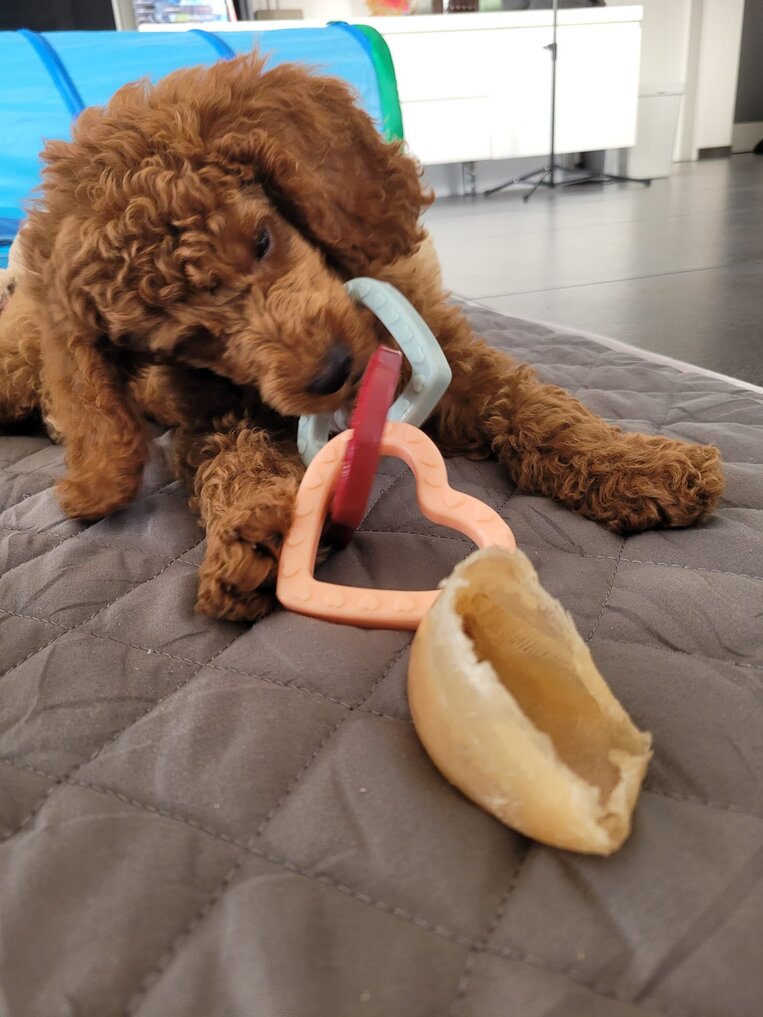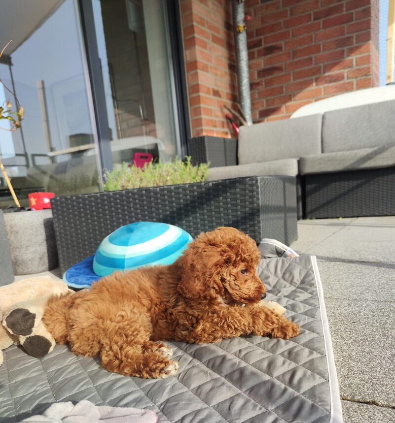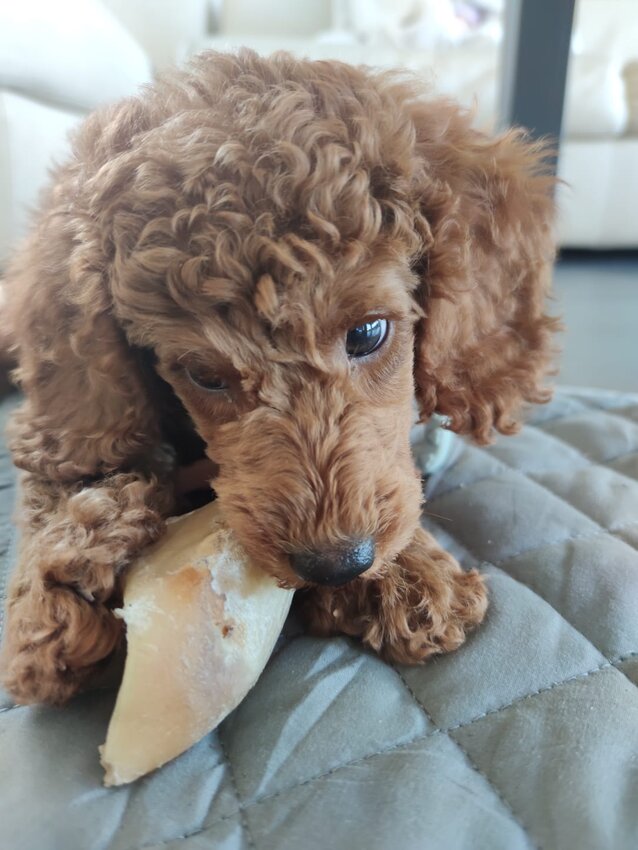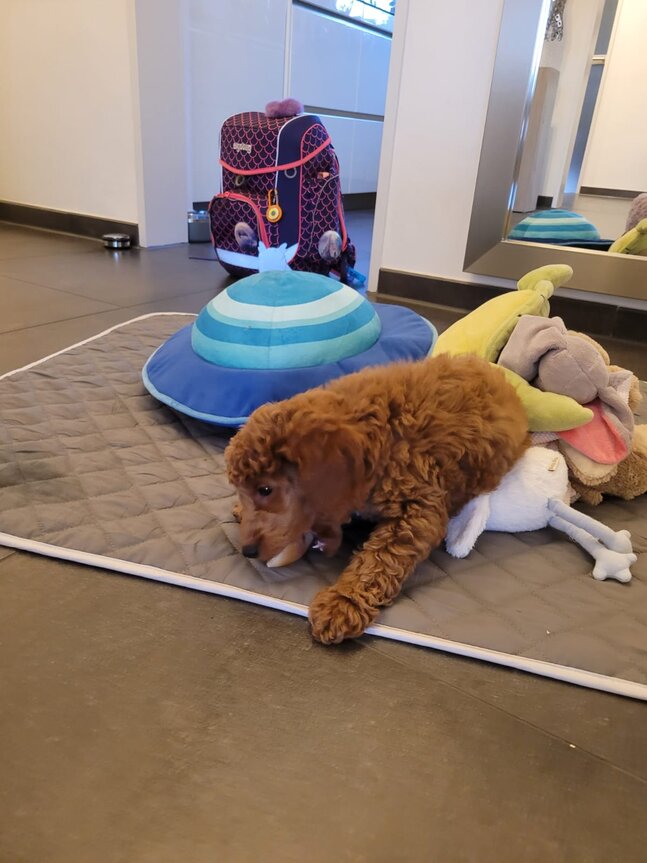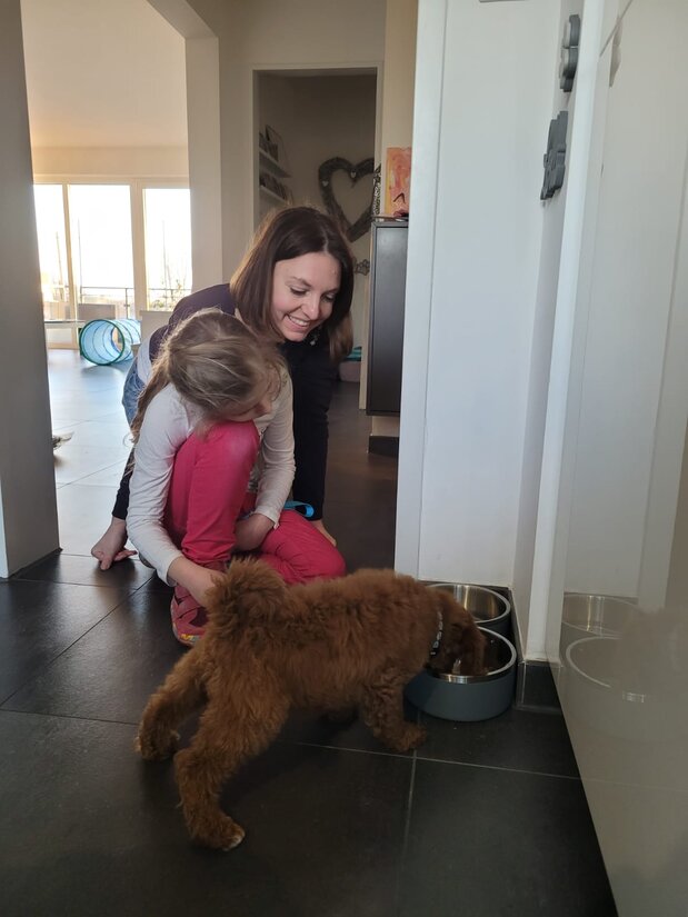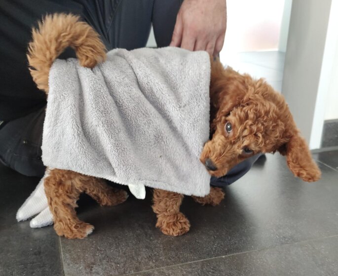 Er hat draußen ganz toll Pipi gemacht und Zuhause schon viel gegessen und getrunken.