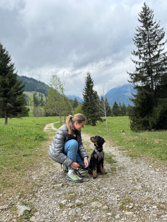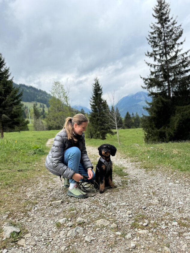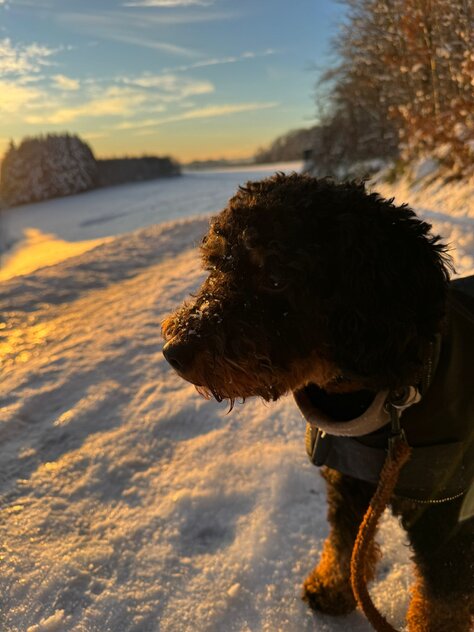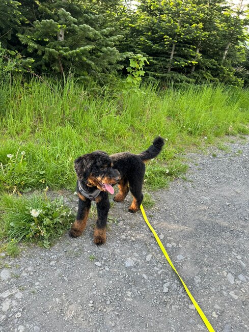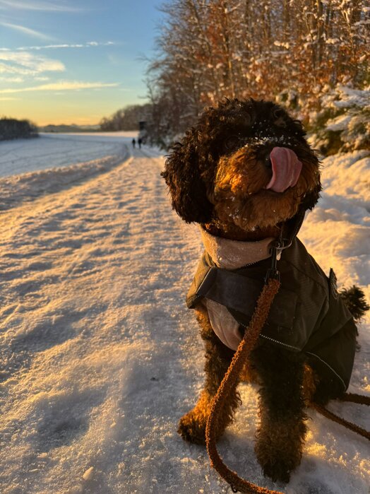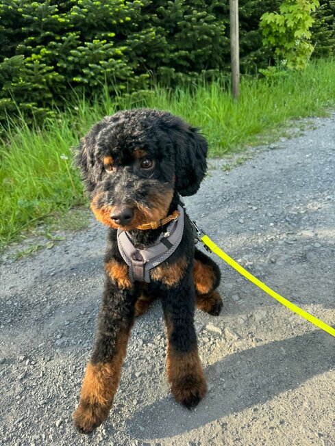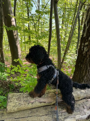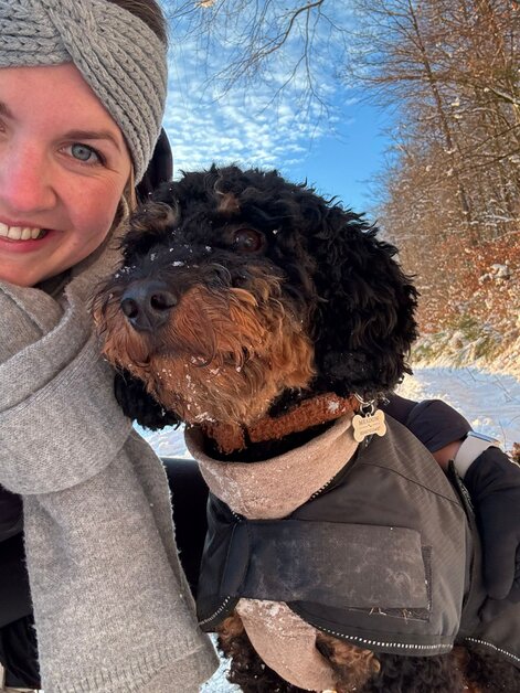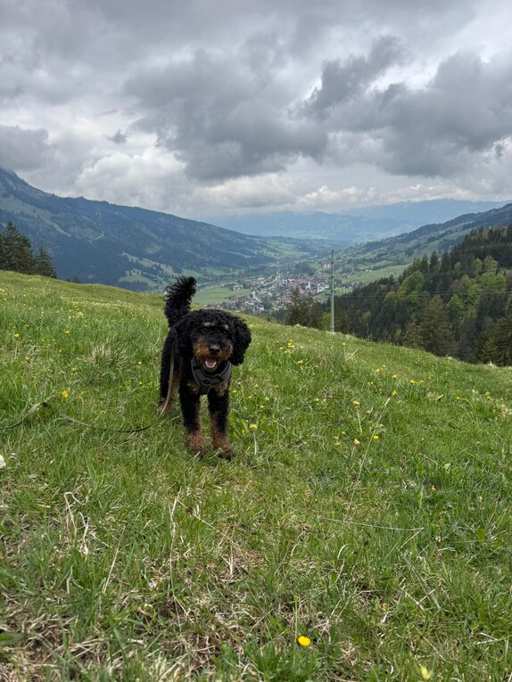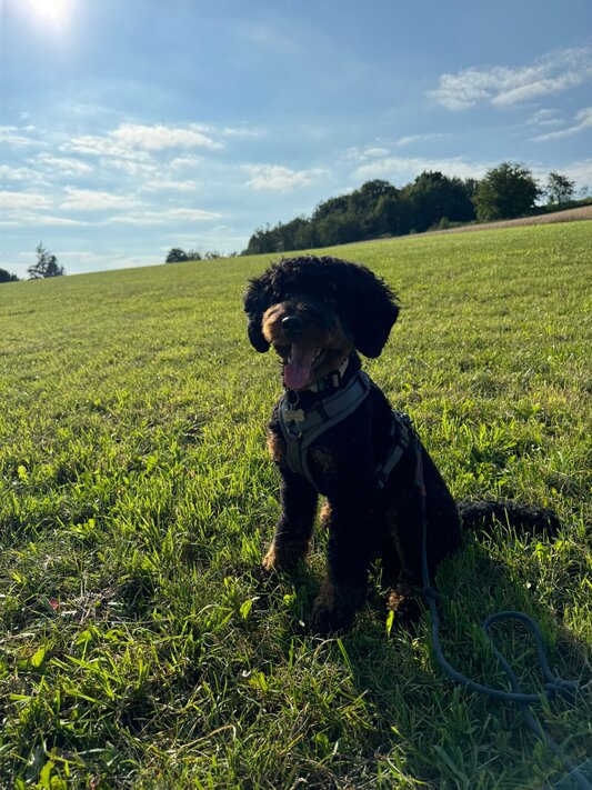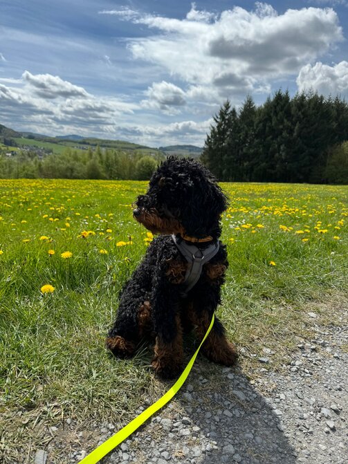 Hallo Steffi, wir wollten uns mal wieder mit einem Update bei dir melden☺️ Meadow und mir geht es nach wie vor super! In der Hundeschule ist er sehr aufmerksam und freut sich jede Woche seinen Freund Fiete (Cocker Spaniel) wiederzusehen und mit ihm zu spielen🥰 Er weiß schon genau was gutes Verhalten bedeutet, aber manchmal vergisst er es noch😉 ich genieße diese wilde Zeit aber sehr und seit Meadow bei mir ist bin ich jeden Tag glücklich und er bringt mich mit seiner witzigen Art Dutzende Male am Tag zum Lachen😅 wenn wir unterwegs sind wickelt er jeden mit seiner freundlichen Art um den Finger, weil er alle immer so freudig begrüßt - er hat entsprechend schon unzählig viele Freunde😍 man kann ihn aber auch nur zum fressen gern haben🥹