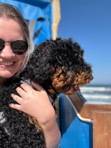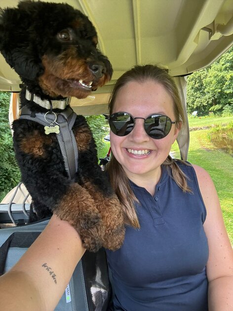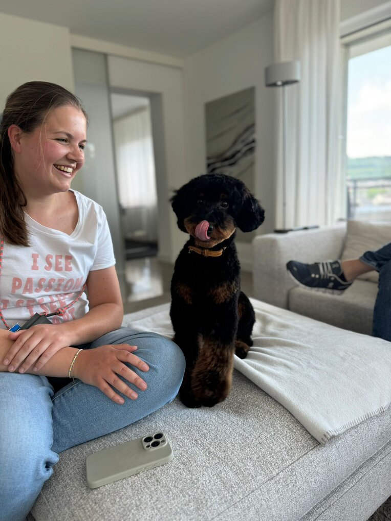 Hallo Steffi, ich dachte ich gebe dir mal wieder ein richtiges Update statt nur bei Instagram und versorge dich mit ein paar Fotos aus der letzten Zeit🥰 Meadow und ich sind vor 2 Wochen endlich in unsere Eigentumswohnung umgezogen! Es ist noch nicht alles fertig, aber wir fühlen uns schon jetzt pudelwohl😍 die ersten Tage war es natürlich ungewohnt für ihn aber mittlerweile meistert er es wirklich toll🫶🏻 auch darüber hinaus geht es uns sehr gut! Wir verbringen im Moment viel Zeit auf dem Golfplatz, nehme dann immer ein Cart mit, damit Meadow nicht zu viel laufen muss - gerade wenn es so warm ist🥵 in der Hundeschule macht er auch toll mit, obwohl die Pubertät natürlich auch ab und zu raushängt🤪 er ist einfach so ein lieber, offener und unglaublich süßer Hund der jeden meiner Tage bereichert🥹 Jetzt aber genug der Schwärmerei, ich hoffe euch geht es auch gut☺️ Ganz liebe Grüße aus Meschede, Meadow und Anna🤗
