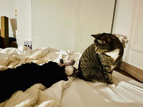 Silvester haben wir gemütlich auf dem Sofa verbracht und Nuri hat zwar etwas irritiert um null Uhr kurz hochgeschaut, dann aber beschlossen, dass schlafen zwischen uns auf dem Sofa besser ist und wieder die Augen zu gemacht.