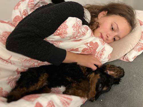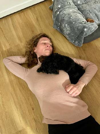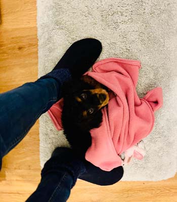 Sie sucht viel meine Nähe und ist bis auf wenn sie ihre fünf Minuten hat (vermutlich total normal, weil sie hört) super lieb.