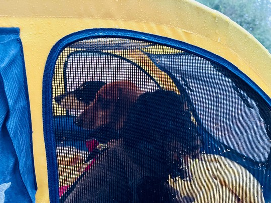 Am 31 waren wir mit den beiden Dackeln (die eine ist schon Oma und benötigt einen Wagen, wenn man mit ihr spazieren geht) unterwegs. Nuri fand es super, vor allem das sie bei regen mit zu Oma Katja in den Wagen durfte 😂.