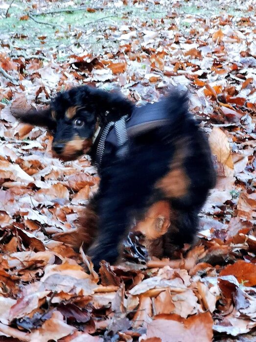 Hallo Liebe Steffi, wir haben heute die Sonne ausgenutzt. Nach all dem Regen und Matsch hat es Nuri genossen draußen zu spielen und zu schnüffeln. Sie läuft auch schon so gut an der Leine und zu 70% kommt sie zu mir, wenn sie frei läuft und ich sie zurückrufe. Sie freut sich immer so sehr, wenn man mit ihr etwas unternimmt, sie neue Dinge lernen darf, oder einfach nur mit uns ist. Sie ist so eine liebevolle, lustige, verschmauste kleine Wirbelhündin, die so gut in unsere Familie passt. Selbst die Katzen schmusen schon mit ihr, solange ich mit schmuse. Die Bilder sind dann aber immer sehr schlecht- sobald ein schönes dabei ist, schicke ich es dir. Sie wieg heute 3,8 kg und wir haben den Eindruck, als wenn sie schon ordentlich gewachsen ist. Liebe Grüße Johanna